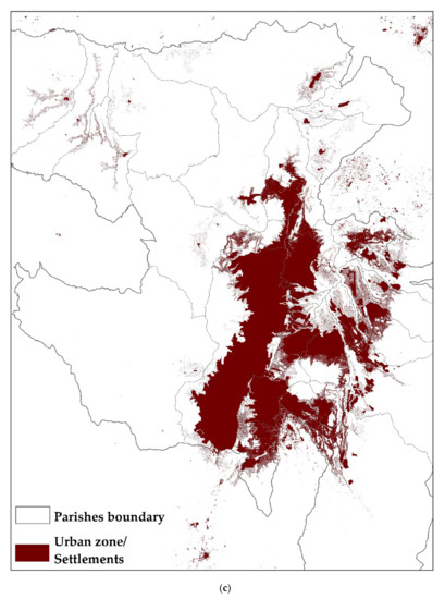 2.3. Calculation of the Spatial Urban Expansion Scenarios for the DMQ’s Rural Parishes of the Next 50 Years