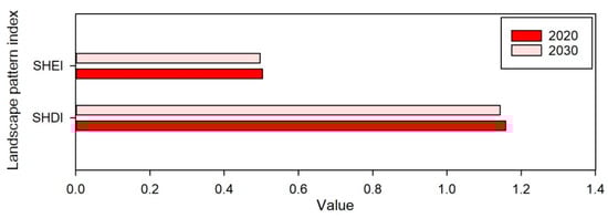 Landscape pattern index (SHDI and SHEI) contrast analysis between 2020 and 2030.