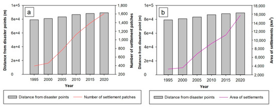 (8) Mountain hazard data points were downloaded and sorted to conduct the Euclidean distance analysis. The relationship analyses include distance from hazard points, number of settlement patches, distance from hazard points, and area of settlements.