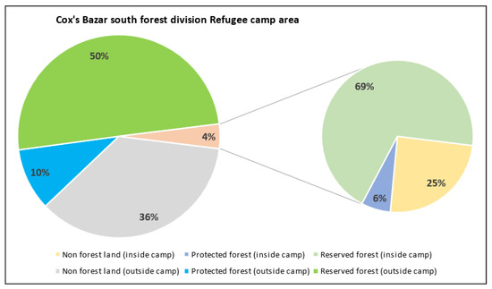 Distribution of forest land area with Cox’s Bazar south forest division and refugee camp area.
