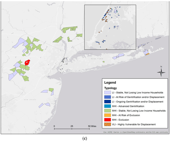 Based on these findings, there are policy implications that can be generated. First, local authorities must be aware that public transit could not meet the demands inside NYC and the periphery among low-income neighborhoods. This study identifies transit deserts, most of which are in NYC and the periphery. In addition, the rate of economically disadvantaged neighborhoods (i.e., VLI and LI categories) in transit deserts is higher than in others. These findings are consistent with previous reports [59,60]. Notably, these unmet demands might lead to a vicious circle of low-income households living in neighborhoods where they must spend extra time and money on transportation [61]. Hence, we call local authorities to invest in public transit in these low-income neighborhoods. Still, they should be careful in allocating these budgets to avoid displacement since this study proves transit’s impacts on gentrification progress. To improve the transit service without displacement, we encourage authorities to reference other empirical cases, such as TOD in Pacoima [62]. In addition, it is crucial to co-operate with planning authorities to provide housing credit programs and ensure community engagement during the development [63].