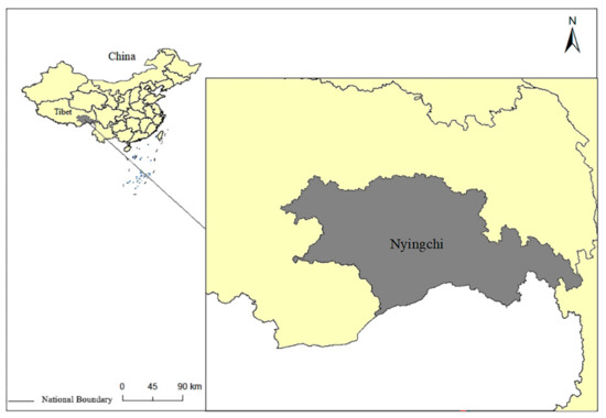 Location map of Nyingchi. Note: The map is based on the standard map of the Map Technical Review Centre of the Ministry of Natural Resources of China (Number: GS (2019)4342), with no modifications to the base map. Map-making by the author.
