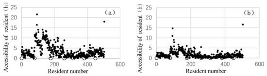 Resident number within different accessibility ranges before and after reconstruction.
