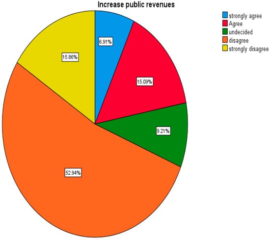 An interview with a key informant revealed that residents evaded taxes by making informal payments. Land-related property valuations for tax purposes were deliberately underestimated to reduce the tax burden. As indicated in Figure 5, respondents were asked to rate their opinions of the town’s public revenues. A total of 207 (52.9%) and 62 (15.9%) of the respondents answered “disagree” and “strongly disagree”, while 59 (15.1%) and 27 (6.9%) of the respondents answered “agree” and “strongly agree”, and 36 (9.2%) answered “undecided”. Thus, from Figure 5, it can be seen that the majority (207 (52.9%)) of the respondents confirmed that weak governance in urban land management reduced public revenue.