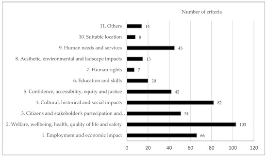 | 4. Cultural, historical and social impacts | The criterion refers to the impact on cultural, historical heritage, demographic and social capital of the local communities interested in the infrastructure (social capital, internal human resources, contribution to social development, settlement cohesion, identity, and culture, the number of new inhabitants, etc.). | [6,8,9,10,11,19,20,22,23,24,25,26,27,28,29,30,35,38,40,44,46,50,51,54,55,56,57,61,62,63,64,66,70] |