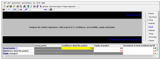 - In the first step, the matrix was compiled with the categories of the criteria, with the aim to determining the importance of each in the evaluation of the social sustainability of an infrastructural project;