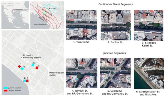 Location of the six case study areas within Thessaloniki’s urban fabric.