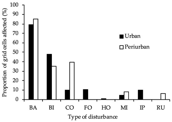 4.3. Association between Types of Anthropogenic Disturbances of Green Spaces in Bujumbura