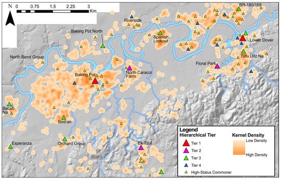 - Thompson, A.E.; Walden, J.P.; Chase, A.S.Z.; Hutson, S.R.; Marken, D.B.; Cap, B.; Fries, E.C.; Guzman Piedrasanta, M.R.; Hare, T.S.; Horn, S.W., III; et al. Ancient Lowland Maya Neighborhoods: Average Nearest Neighbor analysis and Kernel Density Models, Environments, and Urban Scale. PLoS ONE 2022, 17, e0275916. [Google Scholar] [CrossRef]