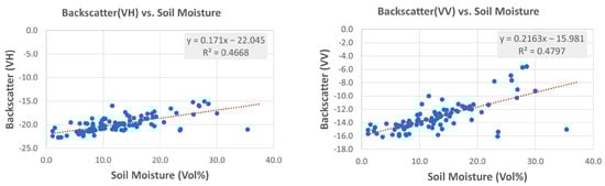 Figure 5. Correlation of the soil moisture with radar backscatter.