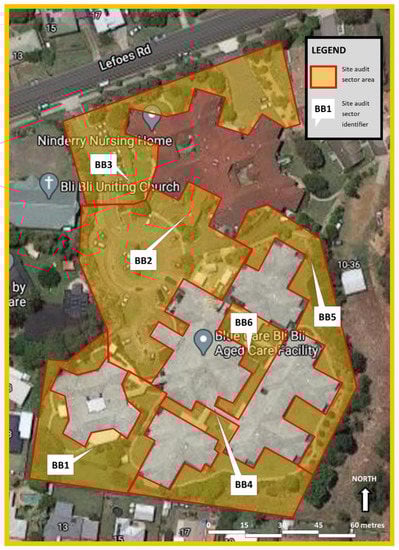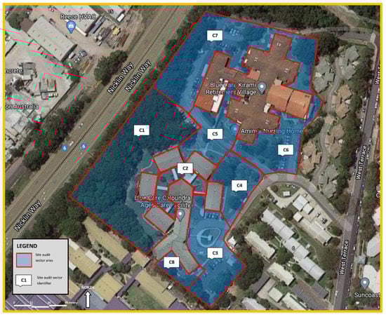 Caloundra Aged Care Facility site image with audit sector assignment (Image Source: Google Maps).