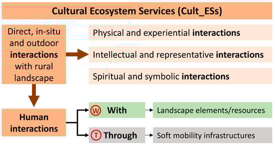 Cultural ecosystem services (Cult_ESs) provided by “direct, in-situ and outdoor interactions with rural landscape” (CICES V. 5.1) can be enjoyed by humans only if they have direct access to such services through an infrastructure network. This is particularly true in rural areas, while in urban ones the compactness of the built-up areas guarantees better accessibility to Cult_ESs [37].