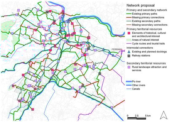 Within this framework, the goals of the present work are: (1) to develop a methodology useful to plan a soft mobility network that is able to valorize existing infrastructures according to the “3Rs” rule of sustainability, that has recreational and touristic functions, and that maximizes the cultural ecosystem services provided by rural landscapes; (2) to validate the methodology in the Alto Ferrarese territory, defining a soft mobility masterplan at the supra-municipal scale. The supra-municipal scale is an intermediate level between the municipal and the provincial level, composed of a group of neighboring municipalities. It is the optimal scale in which detailed soft mobility infrastructure planning should take place, as the municipal level is too small while the provincial level could be too large.