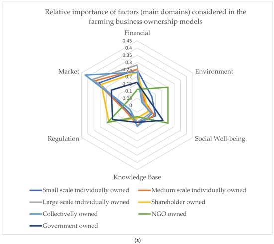 (a). Relative importance of the main domains in influencing land-use decision making for each farming ownership model. (b). Relative importance of main domains across all farming ownership models.