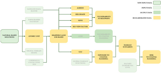 In this scenario, the proposed GIS-based framework was aimed at supporting decision-makers to assess the climate benefits associated with the design and implementation of NBSs in urban open spaces oriented towards reducing the impacts associated with coastal flooding and the improvement of heatwave vulnerability conditions.