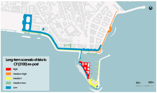 Long-term scenario of risk to coastal flooding phenomenon (2100) after the application of medium-hard NBS.