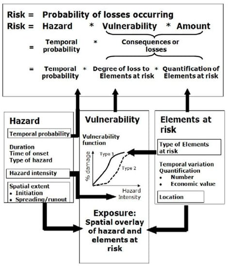 - Simmons, D.C.; Corbane, C.; Menoni, S.; Schneiderbauer, S.; Zschau, L. Understanding Disaster Risk: Risk Assessment Methodologies and Examples. In Science for Disaster Risk Management 2017: Knowing Better and Losing Less; Publications Office of the European Union: Rome, Italy, 2017; pp. 38–130. Available online: https://drmkc.jrc.ec.europa.eu/portals/0/Knowledge/ScienceforDRM/ch02/ch02.pdf (accessed on 21 January 2023).
