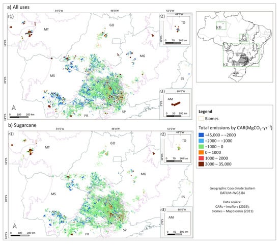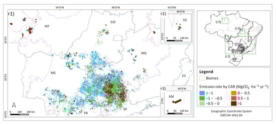 Te (MgCO2∙ha−1∙yr−1): annual CO2 emission rate from changes in carbon stock due to LUC within each CAR and at the state level;