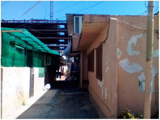 In 1908, Messina was razed to the ground by an earthquake, and the estimated number of deaths varied from 60,000 to 100,000 of a resident population of 180,000 inhabitants, while its building stock was almost destroyed. The systematic reconstruction process began only in 1932 under the fascist regime, but it was interrupted before completion by the outbreak of the Second World War in 1939. The shantytown, which is the object of our analysis, is one of the fourteen slum areas remaining in the city in a context of never-ending reconstruction [19], even though they were built as emergency housing after the destruction of the city in 1908. However, over the decades, the slums have also been the subject of speculation by the inhabitants themselves. Indeed, until around a decade ago, the mechanism of sub-renting or selling of shanties was still active. In these cases, it sometimes happened that those given access to public housing owned by the Municipality, following regular housing assignment based on official and recognized parameters, sold their shack after they had vacated it, or even rented it out. This kind of mechanism, which has led to the social reproduction of marginalized groups, has clearly resulted also from the context of very slow, complex, and ineffective urban and housing policies [20]. All the shanty areas in Messina are still characterized by strong spatial segregation, and often by very high material and socio-economic degradation and a greater concentration of subjects involved in deviance and crime at different levels (from the micro- to macro-scale of illegality). In the social perception of the city population as a whole, these slums represent the areas of greatest danger for personal safety, as well as the highest poverty levels, although some of them are located near central or residential districts. Indeed, from their origins and according to the rationale of the fascist reconstruction [21], they are not concentrated in a specific area of the city but spread out in different districts, resembling small “ghettos” (Figure 2 and Figure 3).