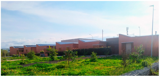 The houses were built back in 2016 (Figure 4), following the complete removal of the shacks that occupied the redevelopment area. Today, three flats are inhabited by three single people in a socially fragile condition, while two other flats house the activities of the socio-educational center (Figure 5), which works with local families in close synergy with a number of institutions in the area—in particular, the school and the parish. The planned energy community is being implemented (the photovoltaic panels and storage system have been installed, and the by-laws regulating it have been drawn up) and is a case of great interest to experts in the energy field [12,13].