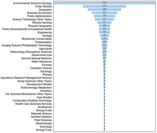 As shown in the keywords and research areas of urban sprawl (Figure 2 and Figure 3), urban sprawl emerges as a special pattern of “urban growth” [47] and “urban expansion” [48], which is inseparable from “urban form” [49], “land use” [47,50], or “land use change” [51,52]. The most influential articles devoted to the effects of urban sprawl—e.g., [27,28,31,32,53,54]—such as public health problems, air quality, energy consumption, ecology and resource conservation, etc. The relationships between urban sprawl and “sustainability” [42], “obesity” [55,56], and “built environment” [31] have received much attention, and the research perspectives are becoming more and more innovative.