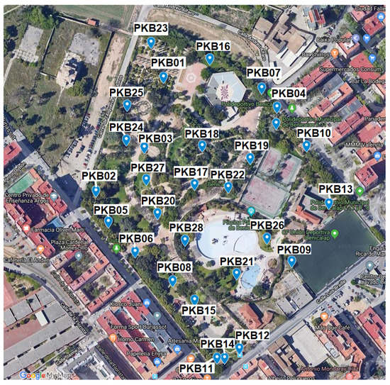 Park in Benicalap. Geolocation of sampling points (Google Maps).