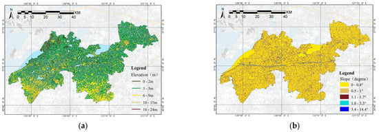 Its topography is low in the north, high in the south and slightly inclined to Taihu Lake. Its relative height is less than 25 m (Figure 4a). The terrain fluctuates gently, and the slope change is below five (Figure 4b). Dianshan Lake and Yuandang are the ecological hearts of the demonstration area, and Jiangnan Canal and the Taipu River are vertical and horizontal green corridors. They all structure the water network pattern of the whole site (Figure 4c). The water system has various forms, and the water coverage rate is as high as 20.6% (Figure 4e,f). The soil composition is mainly in paddy and degleyed paddy soil (Figure 4d). Among the land use types, cropland accounts for the highest proportion, accounting for 48.7%, followed by urban land, accounting for 29.3%, and forest and grassland at a smaller scale (Figure 4g), accounting for only 1.4%. A series of human activities, such as building dikes, digging water and building fields, has created a complete cultural ecosystem of the polder system and formed four landscape geographical feature divisions: the Lougang Area, Hudang Area, River Network Area and Great Lakes Area (Figure 4h).