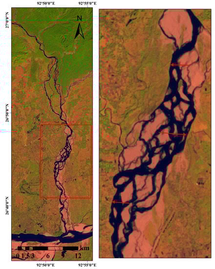 - Gogoi, C.; Goswami, D.C. A study on bank erosion and bankline migration pattern of the Subansiri River in Assam using remote sensing and GIS technology. Int. J. Eng. Sci. 2013, 2, 1–6. [Google Scholar]