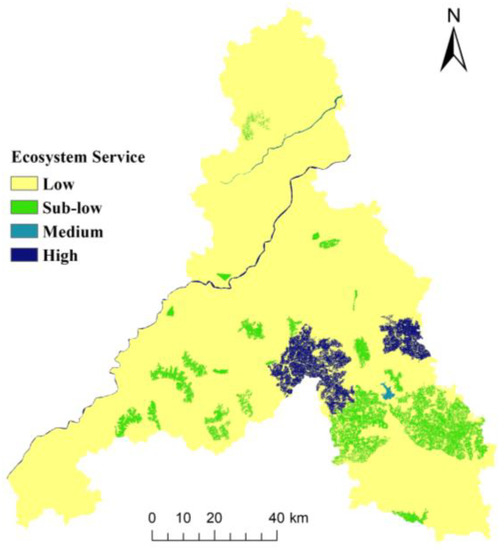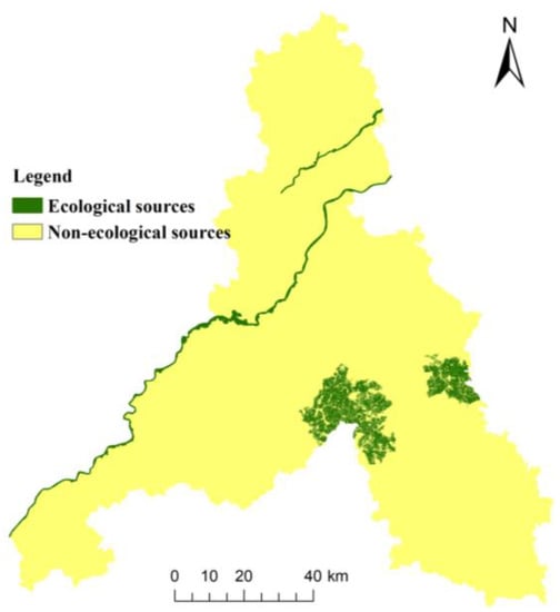 The ecological sources were continuous in the landscape, which were stable patches with high ecosystem service function [43]. This study selected the ecological sources by calculating the ecosystem service value and the accessibility of the patches, which not only considered the spatial form of patches, but also supplemented the patches with important ecological functions through the ecosystem service value.