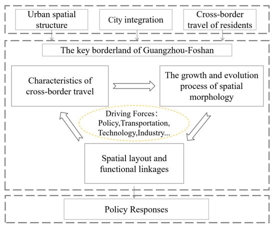 This study aims to explore the spatial pattern and series driving forces of cross-border regions in China. We selected the Guangzhou and Foshan metropolitan areas as case sites, using multi-source data, such as multi-temporal remote sensing data, mobile phone signaling, residents’ travel logs, POI, etc., and adopted quantitative analyses such as spatial analysis and visualization, complex flow network, hotspot analysis, and case research methods. The research structure was as follows: after conducting the literature review section, we established an analytical framework, delineated the Guangzhou-Foshan key boundary areas, and then analyzed the temporal and spatial characteristics of residents’ cross-border travel to explore its impact on the evolution of urban spatial structure (spatial layout and functional linkages) from 1985 to 2020. Then, we explored the driving forces from the perspectives of their development process, spatiotemporal effects, and local government policy responses. This paper theoretically enriches and expands the research content and perspective of urban geography, provides a scientific basis for forming a new pattern of national and regional economic development, and promotes the integrated development of the Guangzhou-Foshan region, as well as providing empirical references for the development of integration in other regions.