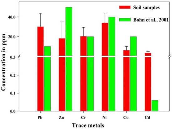 Figure 2. Comparison of mean values of trace element concentrations in the studied soil samples with those of Bohn et al. [31].