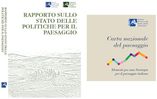 - MiBACT, ONQP. Rapporto Sullo Stato delle Politiche per il Paesaggio in Italia; MiBACT: Rome, Italy, 2018; Available online: https://www.soprintendenzapdve.beniculturali.it/la-soprintendenza-informa/atti-di-indirizzo/rapporto-sullo-stato-delle-politiche-per-il-paesaggio/ (accessed on 30 January 2023).