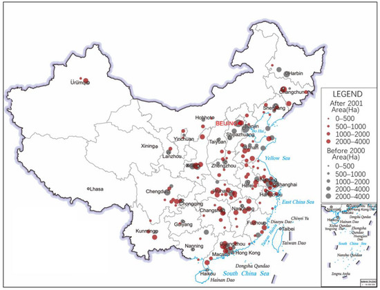 In the context of China’s rapid modernization and urbanization, the HIDZs are not incidentally associated with technological innovation and industrial development [10,11]. On the one hand, HIDZ policy is a tool for the Chinese central government to use in fostering independent innovation promoting commercialization, industrialization and internationalization by focusing on high-tech achievements. Through the establishment of HIDZs around the country, China has realized an optimization of the national innovation pattern [10] and shifted its position in the global production network from the low end to the high end of global value chains to explore a more sustainable growth mode [12]. On the other hand, China’s HIDZs have taken a crucial part in their host cities’ urbanization and innovation-driven development. Over the past nearly 40 years, many HIDZs have been assumed to have played a role along the lines of “toss a stone to find out what’s ahead [Chinese idiom]” in urban space development. HIDZs had been proven as the first attempt in strategic urban space expansion, as they were often set outside traditional downtowns and could provide opportunities for cities to transcend their spatial constraints.