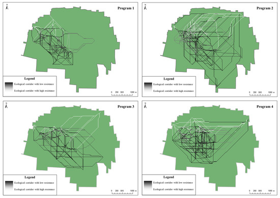 where f m i n represents a positive correlation function, D i j represents the distance between patches I and j, and R i represents the resistance value between patches i and j. Ecological corridors are identified based on the magnitude of gravitational forces G i j between ecological sources, measured using the gravity model [56]. Larger gravitational values indicate greater interaction forces between ecological sources and less resistance to the flow of ecological between ecological sources.