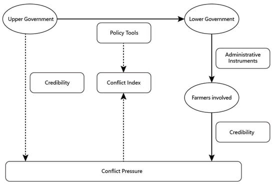 This paper began with an analysis of the credibility and willingness of farmers, the upper government, and the lower government to implement the policy of MVLT. It also established an explanatory framework for policy formulation, implementation, and conflict generation; defined the connotation of farmers’ credibility, policy tools, and administrative instruments; and constructed a corresponding index system and quantitative measurement methods. A unified and accurate description of conflict generation, conflict intensity, and conflict resolution was provided. Through the case analysis, the following key conclusions can be drawn: