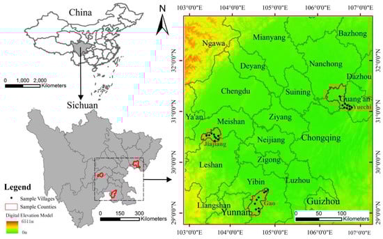 Location map of Sichuan Province and distribution map of the sample districts.