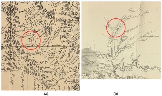 Maps showing the San Luis del Alba or Cruces Fort: (a) 18th century map, by Fray Ignacio de León Garabito 1759; (b) 19th century map, Vidal Gormáz 1869.