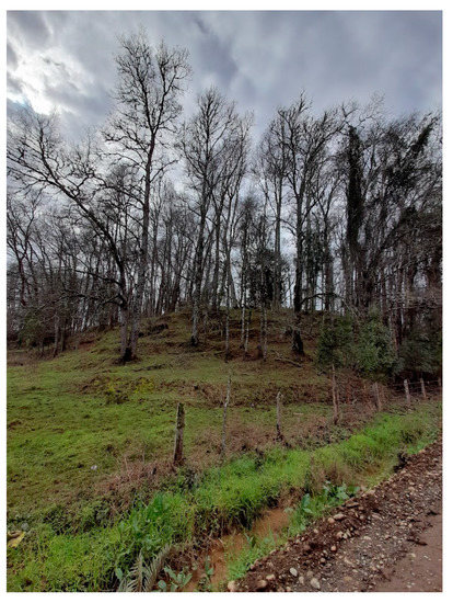 Taking into consideration letter D of Figure 5, Figure 6 shows what seems to be steps in the hill. These may correspond to a defensive site with a palisade to give support to San Luis Fort. Regarding letter D, Father De Rosales [110] said that there was an Indigenous leader’s residential place in this area, detailed as part of the negotiation process between Mapuche People and Spanish. Father De Rosales established at least two large negotiations between Indigenous and Spanish leaders in the area of the fort. Remote sensing analysis suggests that letter D could be part of this fort complex.
