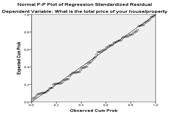 The regression model has been applied at a 95% confidence level. Table 3 shows the coefficient of each independent variable individually 13 variables as represented in mean square, while the t-statistics is calculated using a ratio of coefficient to the standard error of variables. The confidence level is set at 95% with a 5% margin. The “p” value for eleven variables is more than 0.05, meaning that the variable is not affecting the total sale value of a property, as shown in Table 3.