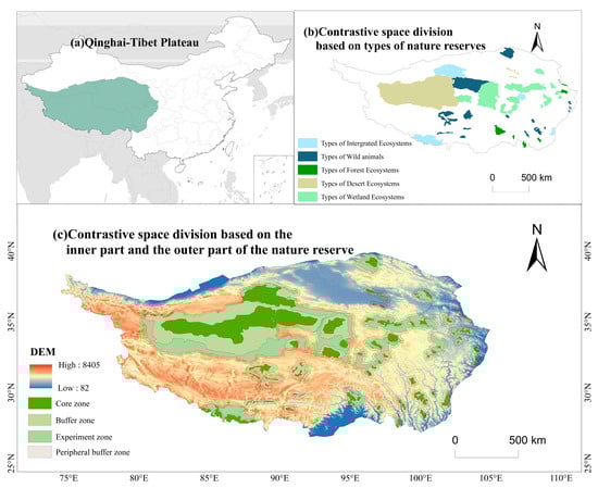 Location of the Qinghai–Tibet Plateau and the distribution of NRs and their functional zones.