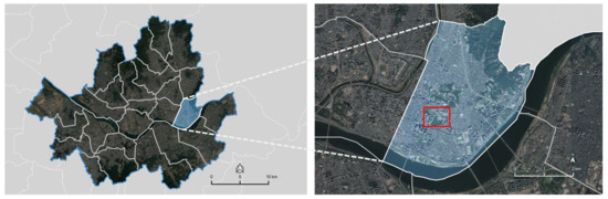 Study site (marked with the red box, 473,565 m2) and surroundings.