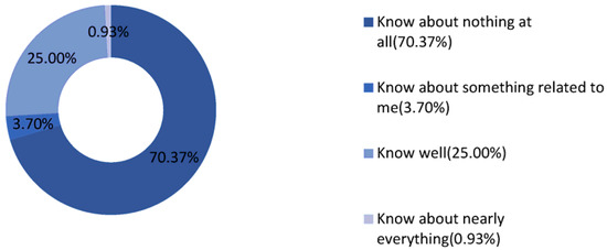 In terms of the respondents’ familiarity with protection and construction, more than 70% said that they did not know anything about the protection planning in the village. Only 25% knew about the projects and activities related to protection and construction in the village and its tourism development in recent years. Furthermore, only 3.7% knew of some of the village construction regulations that were relevant to them, such as the fact that the government would provide a subsidy for new residences that maintained their traditional features (Figure 3).