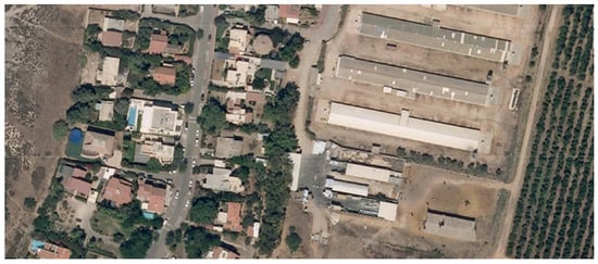 At the same time, unpredictable changes occurred: the agricultural crisis led to the development of small businesses in the moshav. A study conducted in 2014 found that the area of most businesses does not exceed 50 square meters, and that 75% of them employed no more than two salaried workers [5]. Their splitting across the various plots did not enable sharing central services (such as office services), so they were not too economic, and often also illegal: many have been active without a planning permit or license for many years [5], thus arguably tarnishing the moshav’s agricultural image [52] (Figure 4). In some cases, rich individuals bought entire plots and built huge and alienated palaces, completely antithetical to the original ideology of the moshav (Figure 5).