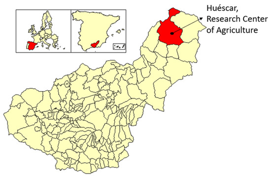 29]. The farm had a plot of almond trees, which occupied most of the farm, and a plot of cereals, both rainfed. There was also a plot with water available for irrigation, dedicated to the cultivation of vegetables. The farm was completed with a flock of sheep of the Segureña breed.