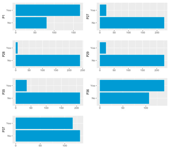 Figure 3 shows that the majority of respondents did not participate in anything related to touristic activities. Another interesting finding emerged, as most respondents pointed out that they were aware through the media of possible negative effects on the receiving communities associated with the expansion of tourist housing, and only few on the possible positive effects. Figure 4 represents all the answers to the questions that are allocated within the Likert Scale (0–10). What can also be seen from the results is that the majority of respondents saw tourism as a great opportunity for local entrepreneurs (P8). There were some factors highlighted as impacting the local community negatively, in particular the increase in the price of housing and business establishments (rental and sale), the increase in prices in shops, bars, etc., and high levels of congestion in public spaces with more traffic. This is in line with previous studies that suggest negative impacts on the land use of tourism in the community [5,13,14,15].