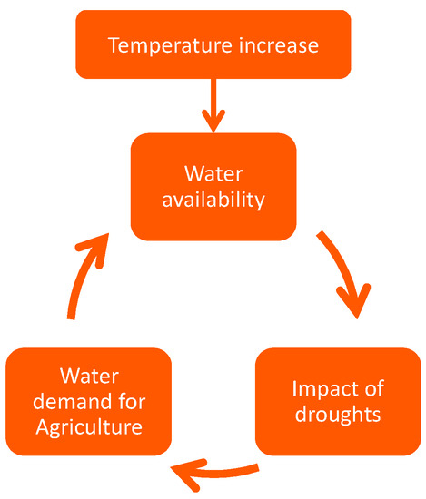 Figure 8. The feedback loop of increasing temperature and available water for agriculture.
