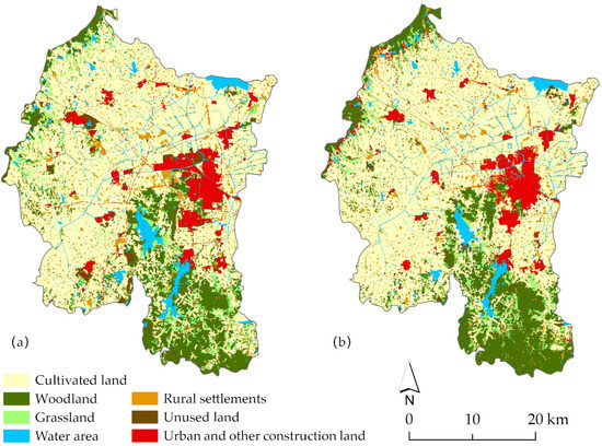 (a) 2020 land use map; (b) land use simulation of 2020.
