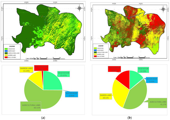 Classified LULC for Benue State for 2000 and 2013. (a) Classified LULC for Benue State for 2000. (b) Classified LULC for Benue State for 2013.