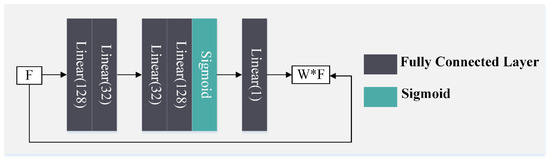 where represents a feature from inter-group fusion; is taken as a set of “blocks” that consists of the FC layer, the BN layer, and the LeakyReLU activation layer. ⊕ denotes a concatenation operator in the feature dimension. represents the weight that is given to each pixel in the spatial dimension.