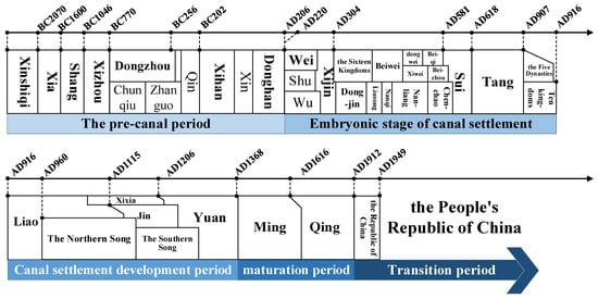 The rudimentary period (AD220–AD916) of the settlement space along the canal chiefly is composed of the Wei, Jin, Northern and Southern Dynasties (AD220–AD589) and the Sui and Tang Dynasties (AD581–AD916).